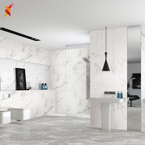 Azulejos de pared de cerámica de diseño de mármol de carrara blanco interior de China de lujo para baño 300x900