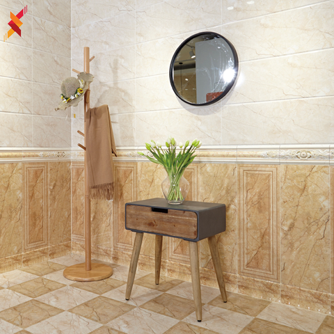 Foshan-azulejos de pared de porcelana antideslizantes para baño, azulejos decorativos de aspecto de mármol y cerámica, color marrón, novedad