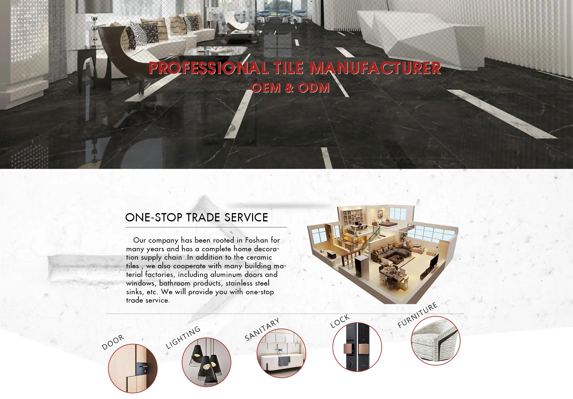 Principais produtos:Telhas de porcelana polida, telhas de porcelana vitrificada polida, telhas de parede de cerâmica, telhas de porcelana vitrificada Matt, pedra sinterizada
